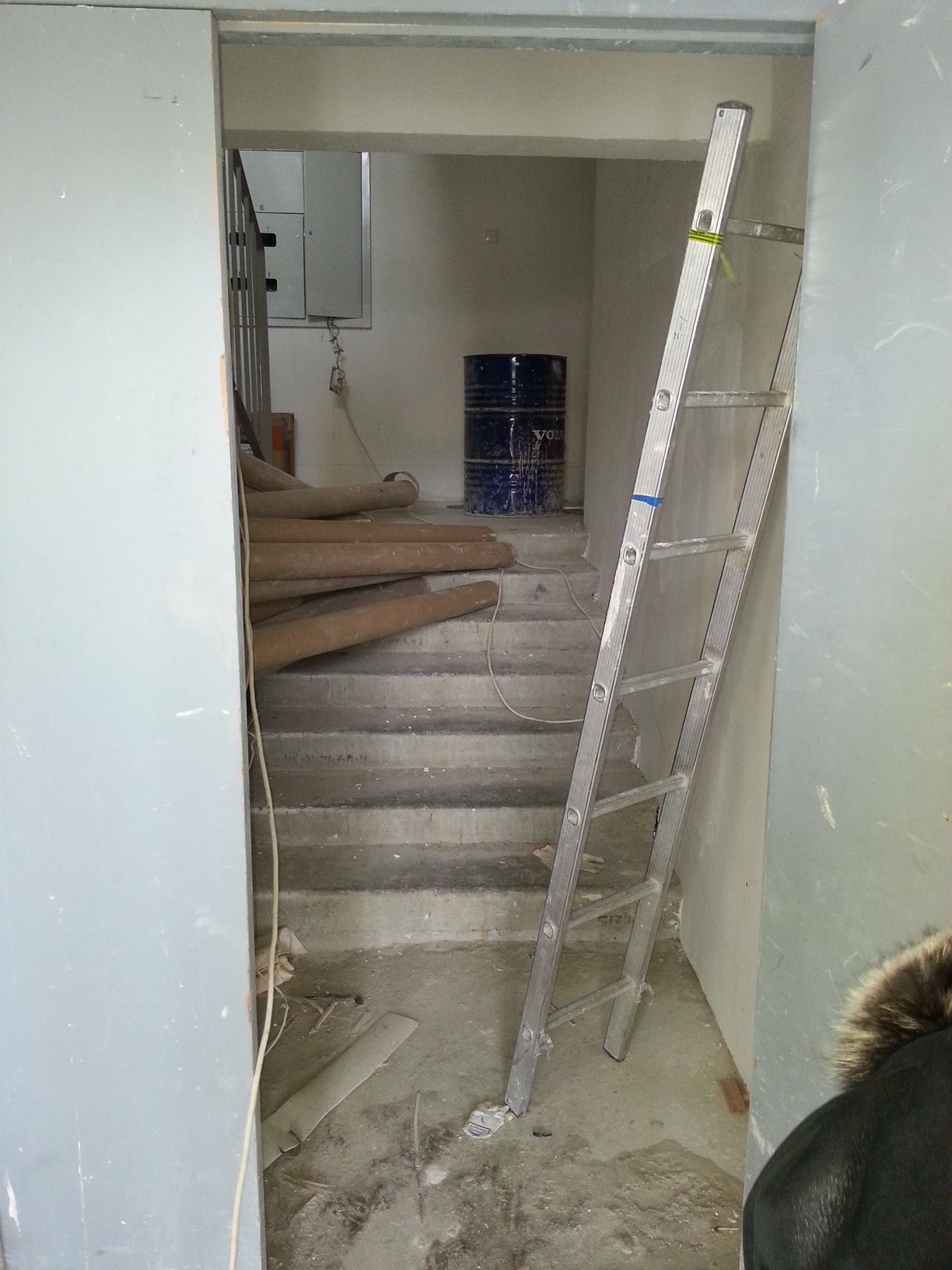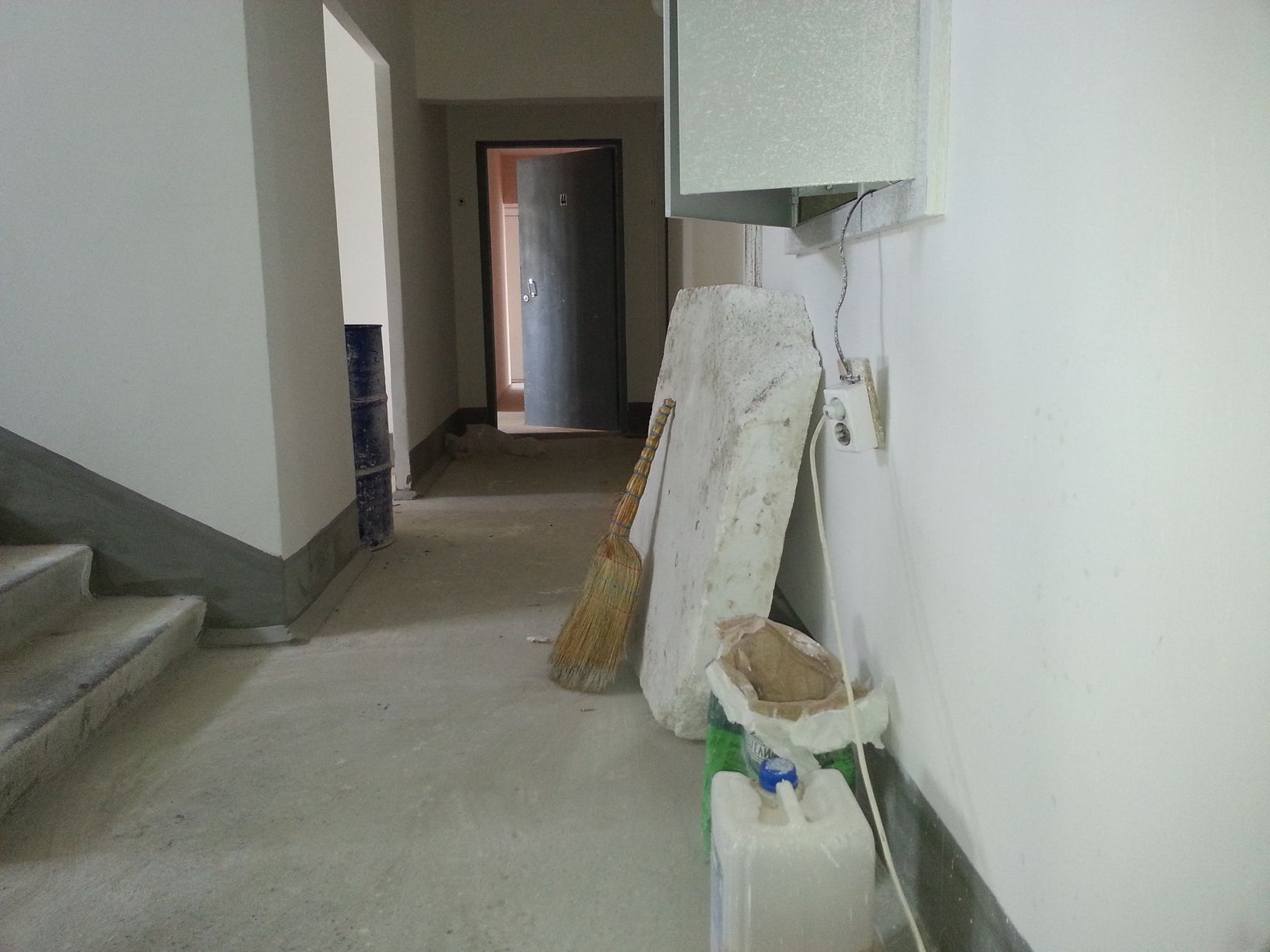 В подъезде активно продолжаются отделочные работы. Фото на этаже: