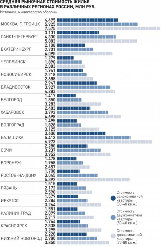 во многих регионах России предлагаемые размеры субсидии позволят военнослужащим приобрести жилые помещения общей площадью, превышающей установленные нормы предоставления жилого помещения, без дополнительного вложения собственных или заемных средств;